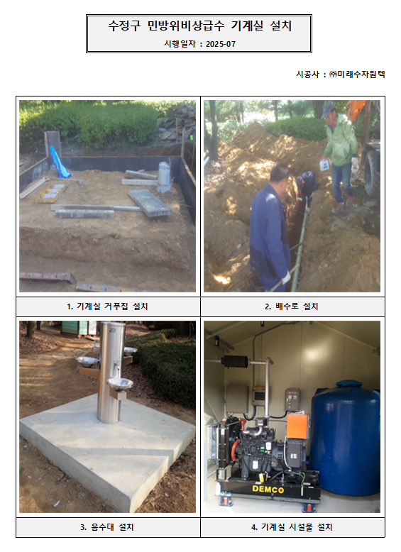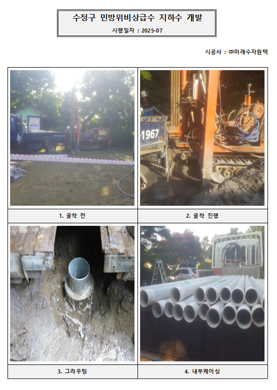 수정구 민방위 비상급수시설 지하수 개발 / 기계실 설치